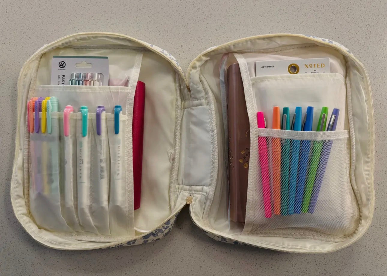 Keep your faith essentials organized and beautiful with our quilted Bible cover. Designed with a soft, fantic exterior and gold zipper detail, this cover opens to reveal multiple storage compartments perfect for your Bible, notebook, pens, and writing accessories. Each pocket is thoughtfully placed to keep everything neat and easy to reach-ideal for church, Bible study, or quiet time at home.