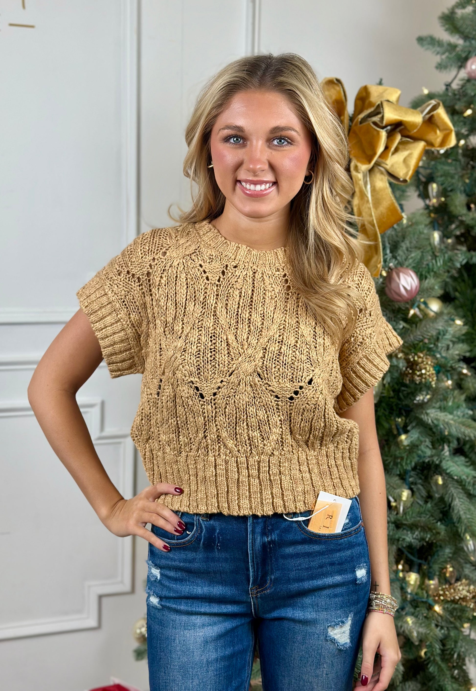 Camel Cable Knit Sweater Top