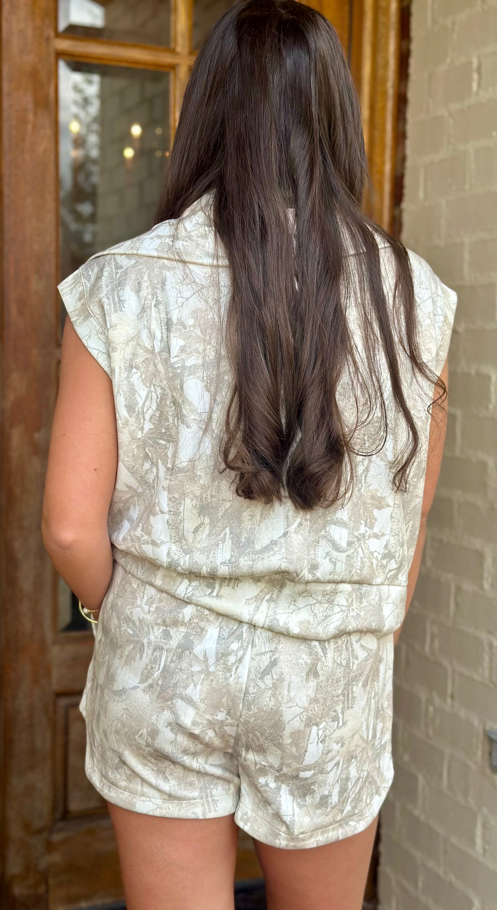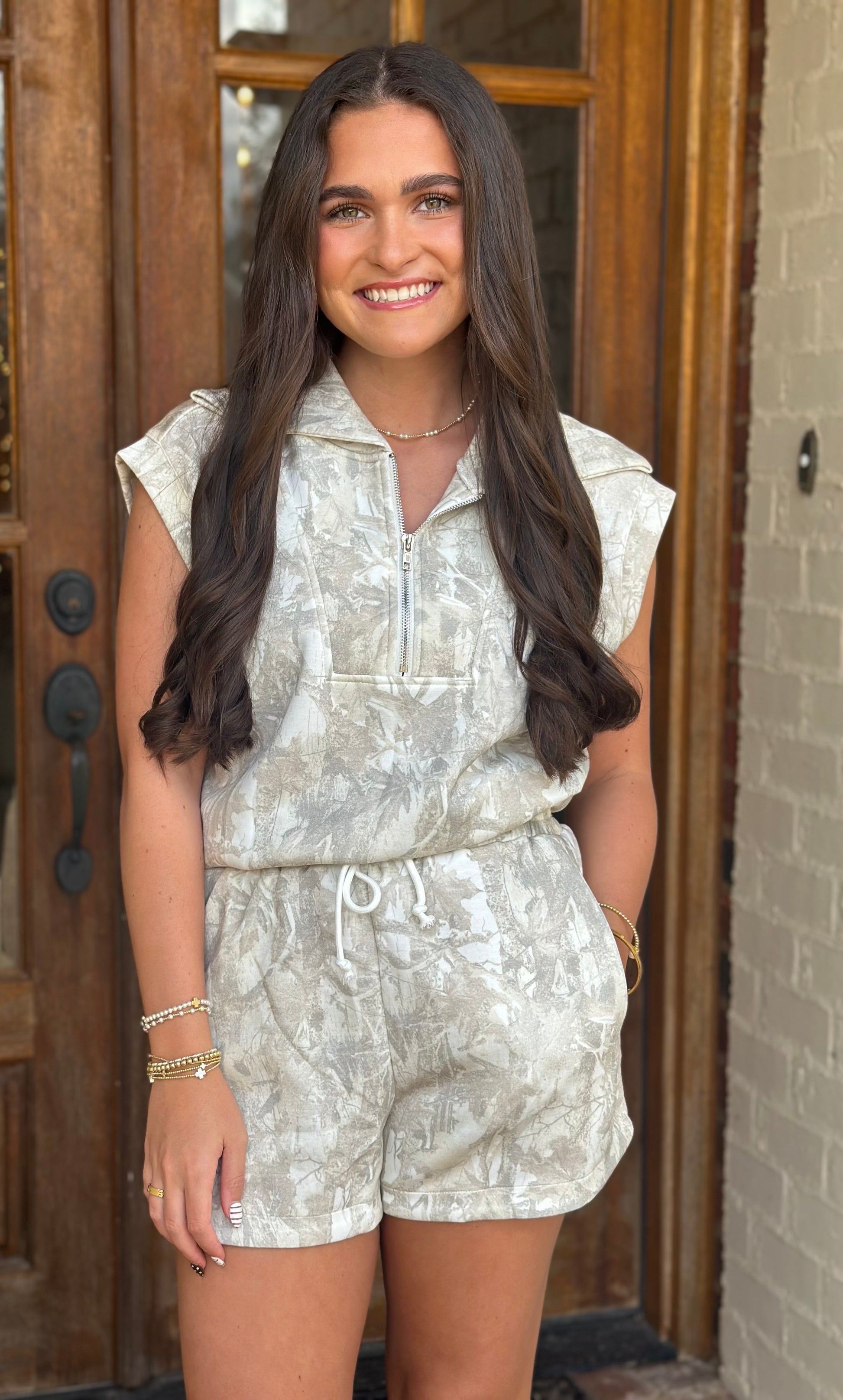 Camo Half Zip Cropped Sweatshirt and Short SET