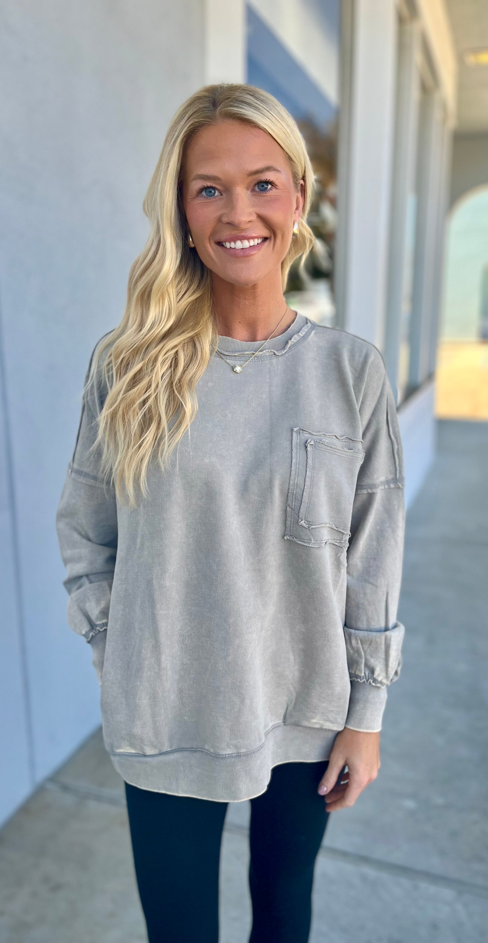 French Terry Acid Wash Front Pocket Pullover, Sleet