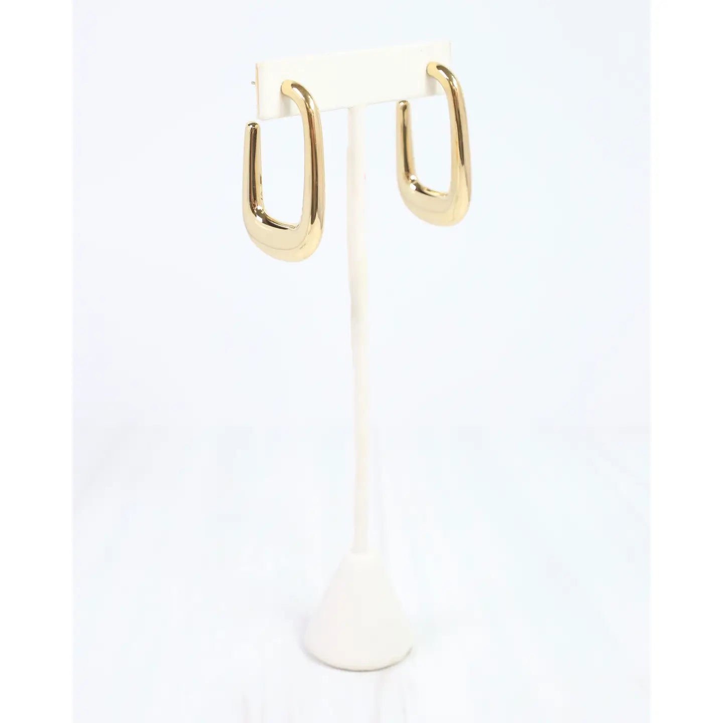 The Glenwood Hoop Earring in Gold features a shiny, open square design that offers a classy and stylish look. Its polished gold finish adds a modern touch, making it an ideal accessory to enhance any fashionable outfit. Dimensions: * 1.75" Length * 1" Width * Brass