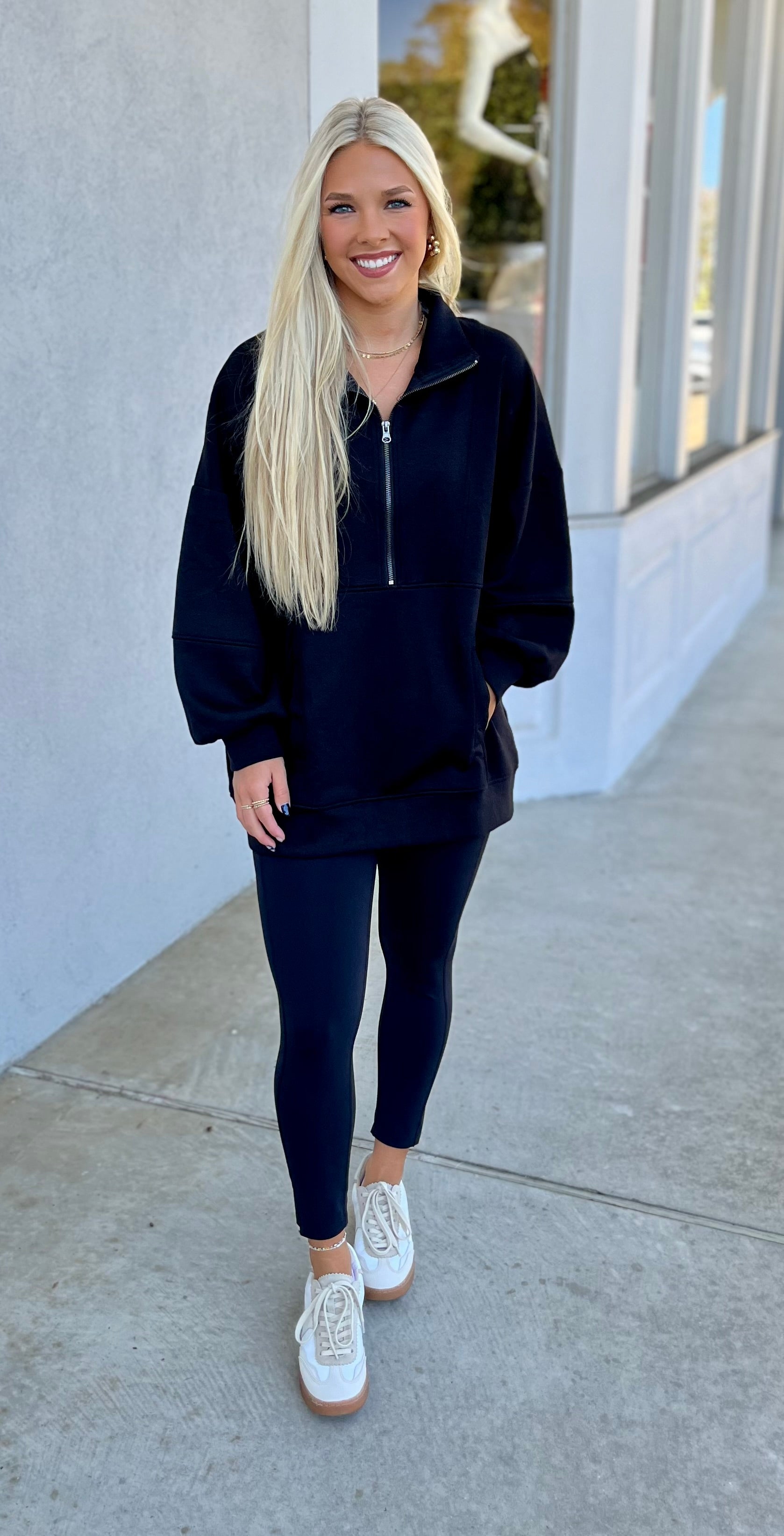 Half Zip Oversized Knit Pullover, Black
