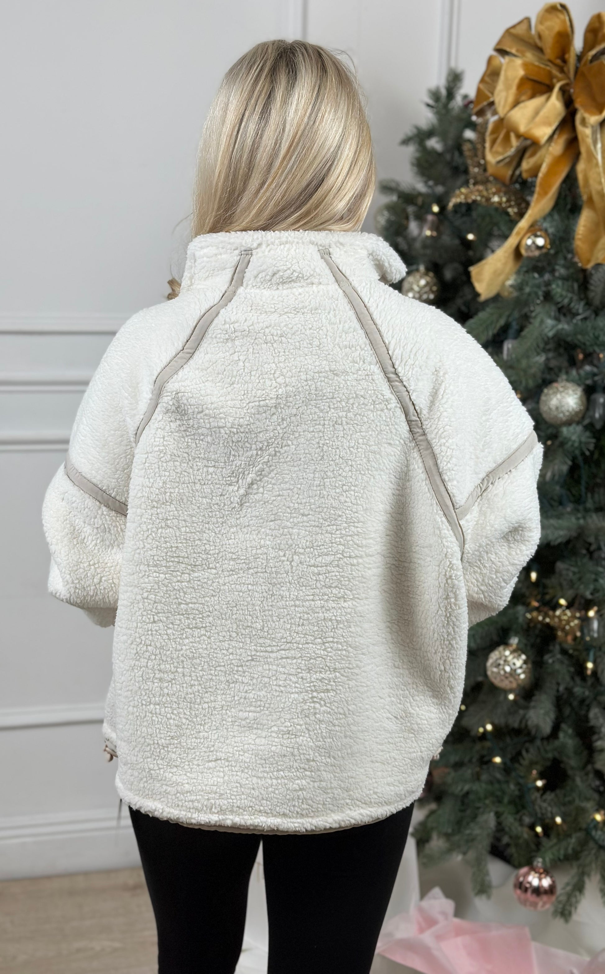 Ivory Beige Sherpa Quarter Zip Pullover