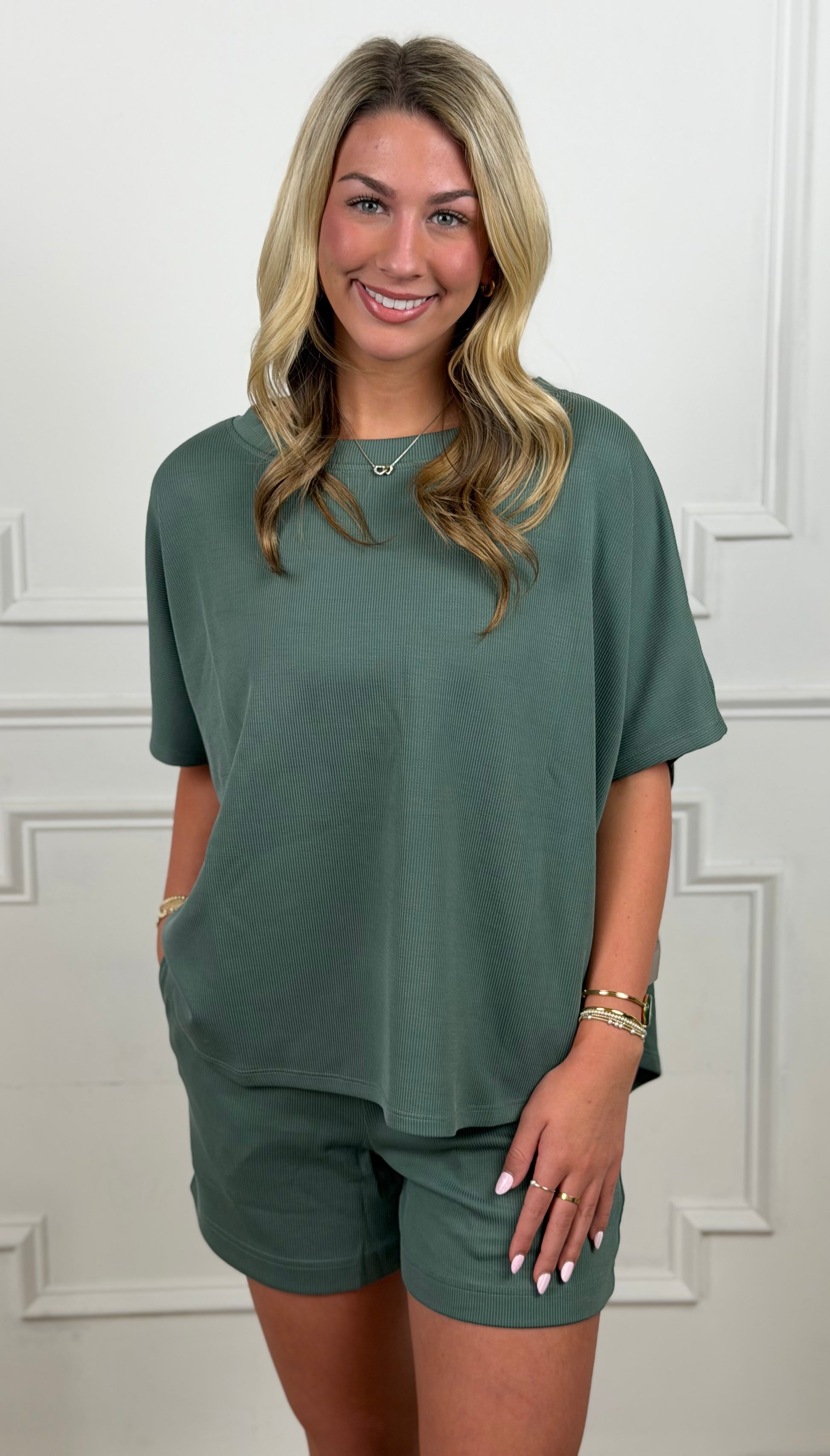 Luxe Sand Wash Rib Dolman Top, Eldergreen