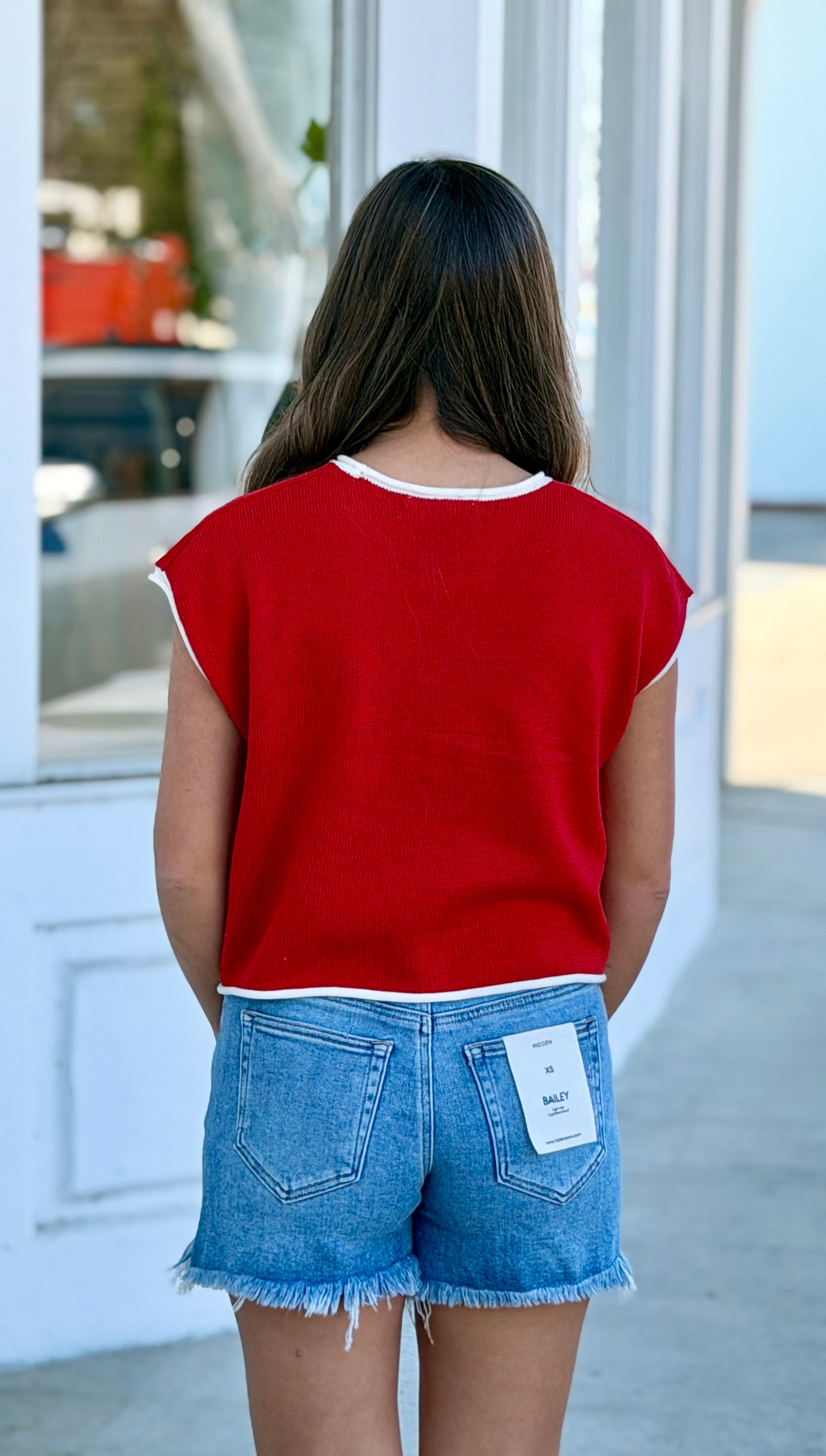 Red Rolled Hem Sleeveless Flag Top
