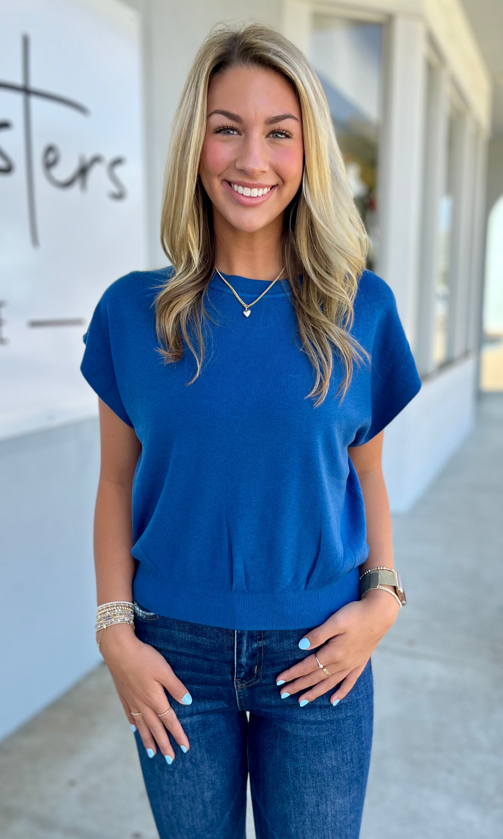Round Neck Dolman Sleeve Sweater, Lt Navy
