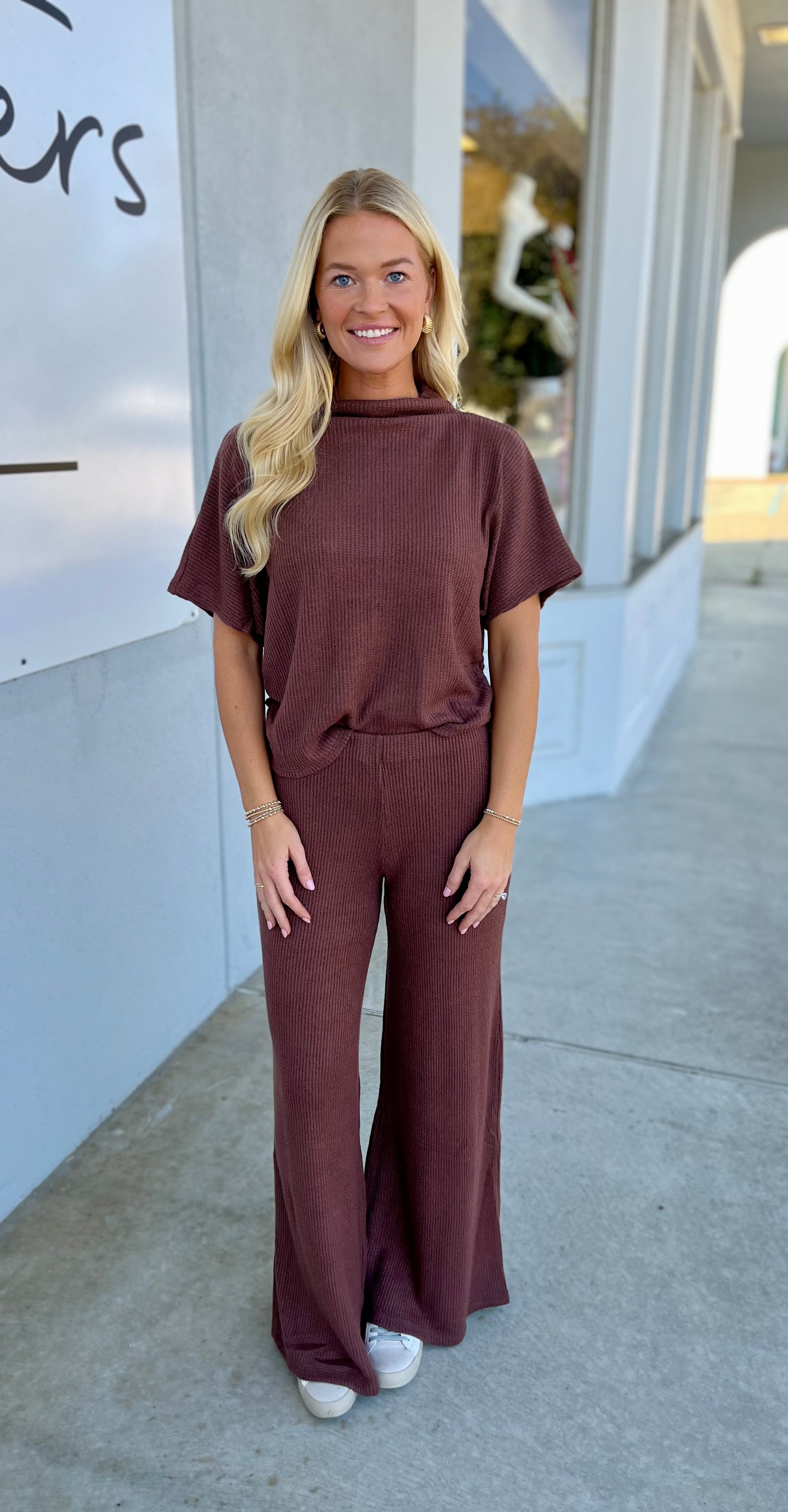 Sweater Mock Neck Top & Pants SET, Brown